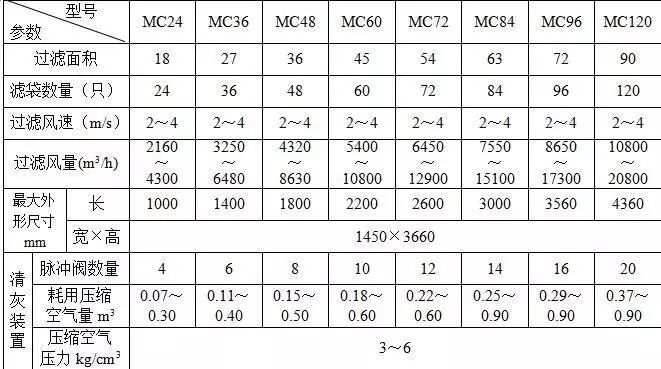 對於過濾常溫(t≤80℃),粘性小、濃度低、顆粒粗的含塵氣體,建(jiàn)議按高檔負荷運(yùn)行采用過濾風速V=2.0~2.5米/分。
