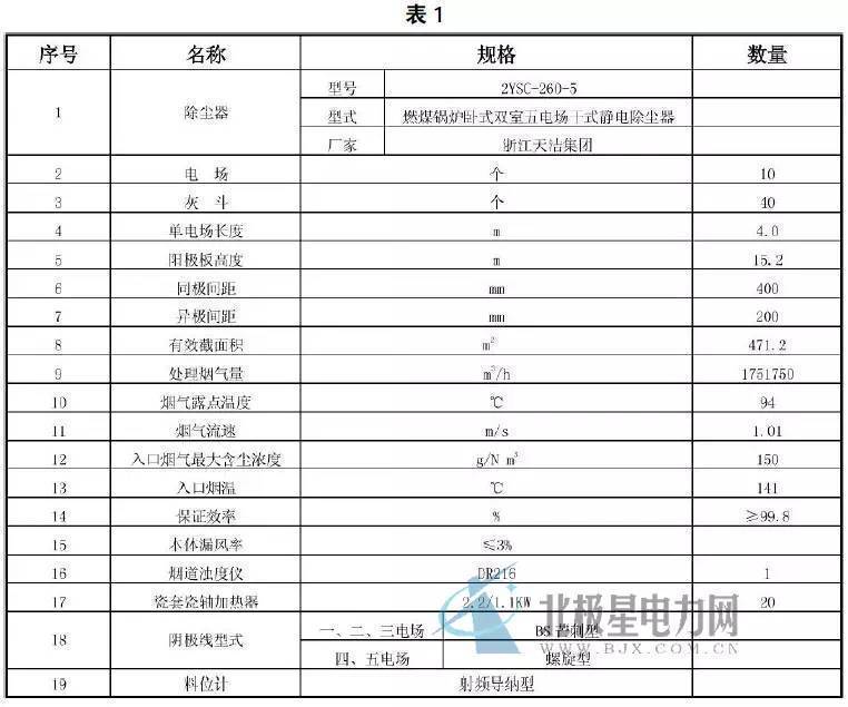 改造前電(diàn)除塵器性能參數(見(jiàn)表1)。
