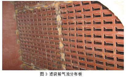 1. 進口喇叭設置三層多孔氣(qì)流分布板,保證(zhèng)進口煙氣均勻分布;