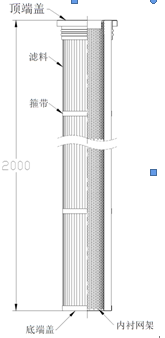 濾筒內部采用金屬網圓筒形內襯支撐,上、下分別與頂端(duān)蓋和底端蓋連(lián)接。濾料的外側布置一定數量的包箍帶(dài),保證褶型濾料在(zài)噴吹清灰時不(bú)發生變形。濾料為硬挺水(shuǐ)刺濾料。