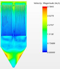 圖2 除塵器內部(bù)CFD流場模擬(nǐ)